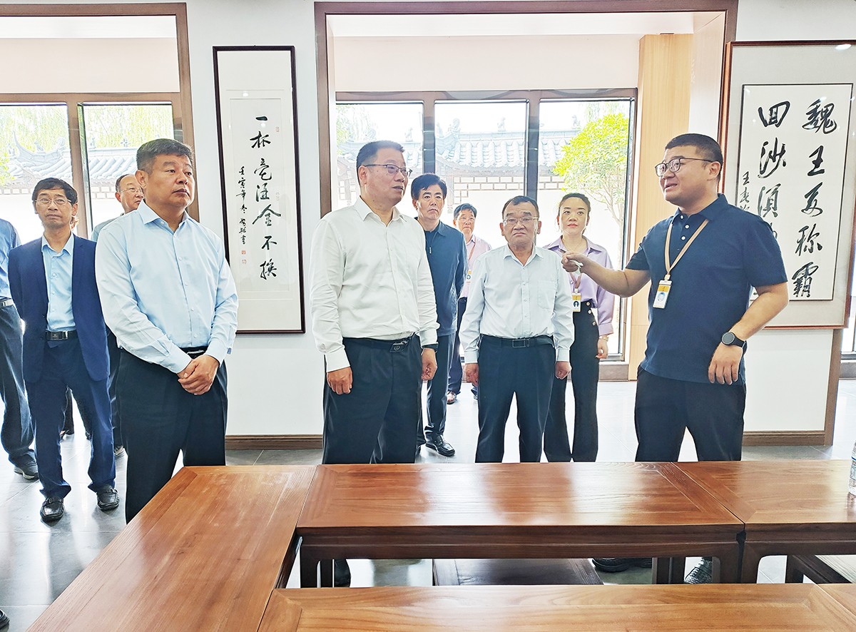 湯涌主席一行查看了金不換文化展示區(qū)、藏酒區(qū)、銷售展廳、明清窖池群和亳酒城市會(huì)客廳。金不換白酒集團(tuán)黨委書記、總裁支濤介紹了近階段企業(yè)生產(chǎn)、經(jīng)營情況和未來發(fā)展規(guī)劃。