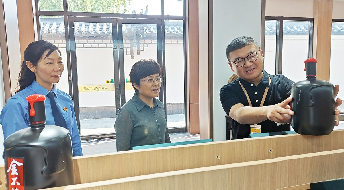 劉繼英一行在金不換集團(tuán)黨委書記、總裁支濤的陪同下,實(shí)地查看了金不換白酒儲(chǔ)藏、銷售、生產(chǎn)、文化展示基地。聽取企業(yè)生產(chǎn)經(jīng)營(yíng)情況和發(fā)展規(guī)劃介紹。劉繼英檢察長(zhǎng)對(duì)金不換多年來堅(jiān)持守法誠(chéng)信經(jīng)營(yíng),創(chuàng)造良好生產(chǎn)經(jīng)營(yíng)環(huán)境,取得高質(zhì)量發(fā)展給予高度贊揚(yáng)。